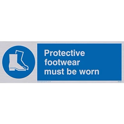 Viking Signs MP285 L15 S "Protective Footwear Must Be Worn" Sign, Rigid Silver Plastic, 50 mm H x 150 W