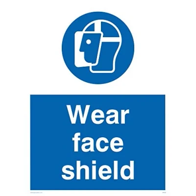 Face shield symbol Standardised finish for a whole range of door, room and information signs. Sticker with a white background colour, comes with a self-adhesive backing. Suitable for fixing to clean, flat, solid surfaces. Vinyl Viking Signs brand Safety Signs are manufactured in the UK and used everywhere from Giraffe Restaurants to the Excel Centre in London.