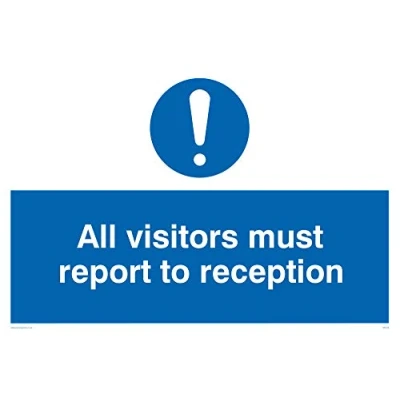 Viking Signs MV318 A4L 3M "All Visitors Must Report To Reception" Sign, 3 mm Rigid Plastic, 200 H x 300 W