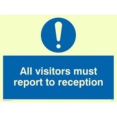 Viking Signs MV318 A5L PV "All Visitors Must Report To Reception" Sign, Photoluminescent Sticker, 150 mm H x 200 W