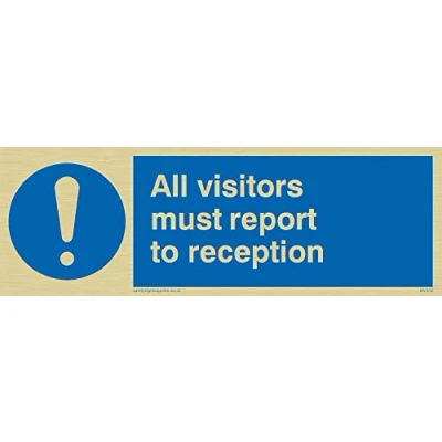 Viking Signs MV318 L15 G "All Visitors Must Report To Reception" Sign, Rigid Gold Plastic, 50 mm H x 150 W