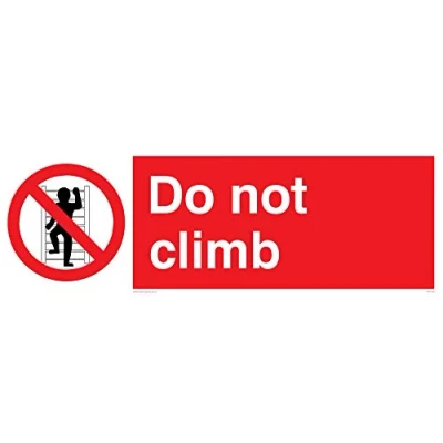 Do Not Climb A very, very tough and durable finish. This road-sign like material is suitable for outdoor applications where durability is needed. It can be screw or post mounted Aluminium Composite Viking Signs brand Safety Signs are manufactured in the UK and used everywhere from Giraffe Restaurants to the Excel Centre in London
