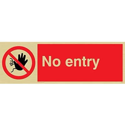 No access symbol Semi-flexible plastic with metallic effect for a traditional brass look, comes with self-adhesive backing Rigid Gold Plastic Viking Signs brand Safety Signs are manufactured in the UK and used everywhere from Giraffe Restaurants to the Excel Centre in London