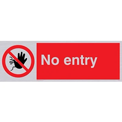 No access symbol Semi-flexible plastic with metallic effect for a contemporary look, comes with self-adhesive backing Rigid Silver Plastic Viking Signs brand Safety Signs are manufactured in the UK and used everywhere from Giraffe Restaurants to the Excel Centre in London