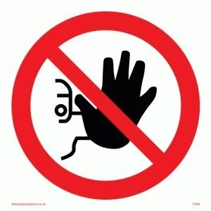 No access symbol Sticker with a white background colour, comes with a self-adhesive backing. Suitable for fixing to clean, flat, solid surfaces Vinyl Viking Signs brand Safety Signs are manufactured in the UK and used everywhere from Giraffe Restaurants to the Excel Centre in London