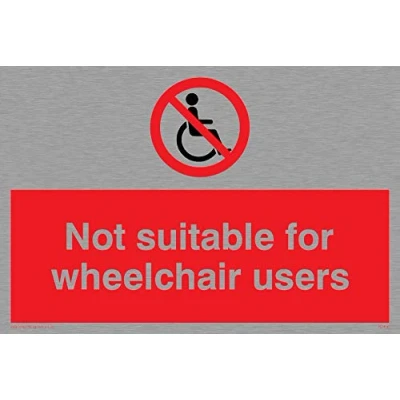 Viking Signs PD456 A6L MS "Not Suitable For Wheelchairs Users" Sign, Marine Grade Stainless Steel, 100 mm H x 150 W