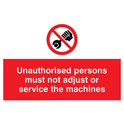 Viking Signs PM44 A4L V "Unauthorised Person Must Not AdJust Or Service The Machines" Sign, Vinyl, 200 mm H x 300 W