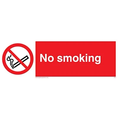 No smoking symbol - cigarette & smoke in black with red prohibition circle & line through, white text on red background Complies with EN 7010 Safety Sign Requirements Sticker with a white background colour, comes with a self-adhesive backing. Suitable for fixing to clean, flat, solid surfaces Vinyl Viking Signs brand Safety Signs are manufactured in the UK and used everywhere from Giraffe Restaurants to the Excel Centre in London
