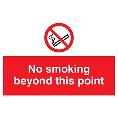 No smoking symbol Complies with EN 7010 Safety Sign Requirements Tough and flexible - suitable for indoor and outdoor applications, can also be used as a hanging sign (hanging fixings not included) Plastic Rigid 3mm Viking Signs brand Safety Signs are manufactured in the UK and used everywhere from Giraffe Restaurants to the Excel Centre in London