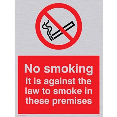No smoking symbol & wording - to meet July 2007 smoking ban guidelines Complies with EN 7010 Safety Sign Requirements Semi-flexible plastic with metallic effect for a contemporary look, comes with self-adhesive backing Rigid Silver Plastic Viking Signs brand Safety Signs are manufactured in the UK and used everywhere from Giraffe Restaurants to the Excel Centre in London