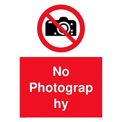 No photography sign, with red background, and white text. Black camera symbol in a prohibition circle Complies with EN 7010 Safety Sign Requirements A lightweight, rigid material. Suitable for temporary signage for construction sites. Can be fixed with screws or cable ties (fixings not included) Correx 5mm Viking Signs brand Safety Signs are manufactured in the UK and used everywhere from Giraffe Restaurants to the Excel Centre in London