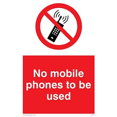 Mobile/prohibited symbol Complies with EN 7010 Safety Sign Requirements Sticker with a white background colour, comes with a self-adhesive backing. Suitable for fixing to clean, flat, solid surfaces Vinyl Viking Signs brand Safety Signs are manufactured in the UK and used everywhere from Giraffe Restaurants to the Excel Centre in London