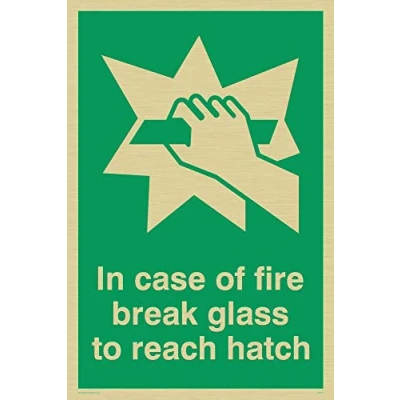Hand breaking glass Complies with EN 7010 Safety Sign Requirements Semi-flexible plastic with metallic effect for a traditional brass look, comes with self-adhesive backing Rigid Gold Plastic Viking Signs brand Safety Signs are manufactured in the UK and used everywhere from Giraffe Restaurants to the Excel Centre in London