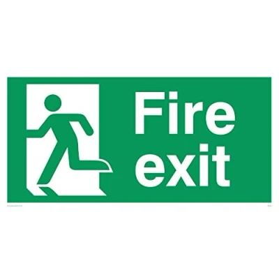 Fire exit/emergency exit sign with running man facing left Complies with EN 7010 Safety Sign Requirements Tough and flexible-suitable for indoor and outdoor applications, can be stuck with adhesive (not supplied) or easily drilled and fixed with screws Plastic Semi-Rigid 1mm Viking Signs brand Safety Signs are manufactured in the UK and used everywhere from Giraffe Restaurants to the Excel Centre in London