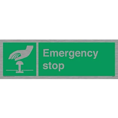 Viking Signs SM410 L31 MS "Emergency Stop" Sign, Marine Grade Stainless Steel, 100 mm H x 300 W