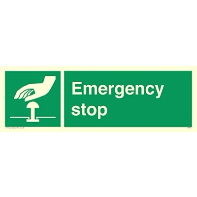 Viking Signs SM410 L31 PV "Emergency Stop" Sign, Photoluminescent Sticker, 100 mm H x 300 W
