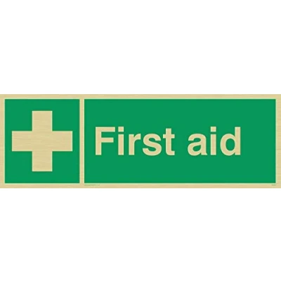 First aid cross symbol Complies with EN 7010 Safety Sign Requirements Metallic effect thin film sticker, for a traditional brass look, comes with self-adhesive backing Gold Vinyl Viking Signs brand Safety Signs are manufactured in the UK and used everywhere from Giraffe Restaurants to the Excel Centre in London
