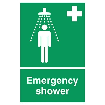 Shower symbol Complies with EN 7010 Safety Sign Requirements Tough and flexible - suitable for indoor and outdoor applications, can be stuck with adhesive (not supplied) or easily drilled and fixed with screws Plastic Semi-Rigid 1mm Viking Signs brand Safety Signs are manufactured in the UK and used everywhere from Giraffe Restaurants to the Excel Centre in London