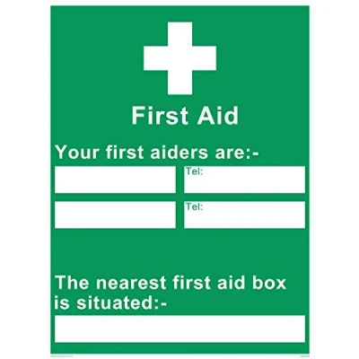 Viking Signs SX5244 A5P V "First Aid your First Aiders are,The Nearest Box is Situated" Sign, Vinyl, 200 mm H x 150 W