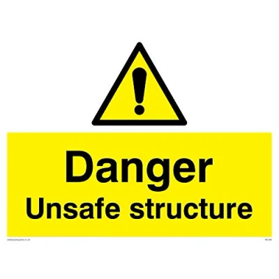 Viking Signs WC480 A3L 1M "Danger Unsafe Structure" Sign, 1 mm Semi Rigid Plastic, 300 H x 400 W
