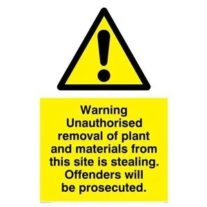 Viking Signs WC503 A2P AC "Warning Unauthorised Removal Of Plant and Materials from This Site is Stealing. Offenders Will be Prosecuted" Sign, Aluminium Composite, 600 mm H x 400 W