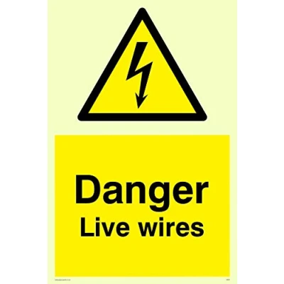 Viking Signs WE91 A4P P "Danger Live Wires" Sign, Semi rigid Photoluminescent Plastic, 300 mm H x 200 W
