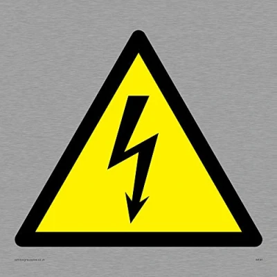 Electrical warning triangle Complies with EN 7010 Safety Sign Requirements Premium finish, tough and durable to suit a modern, stylish environment Marine Grade Stainless Steel Viking Signs brand Safety Signs are manufactured in the UK and used everywhere from Giraffe Restaurants to the Excel Centre in London
