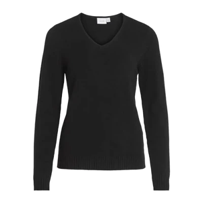 Vila Clothes Women's Viril L/s V Neck Knit Top noos Jumper, Black, 42 (Manufacturer Size: X Large)