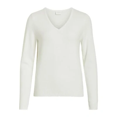 VILA CLOTHES Women's Viril L/s V Neck Knit Top noos Sweater, White Alyssum, L