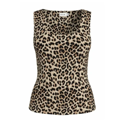 VILA Leoprint Top, Women's, Size: XS, Caramel café
