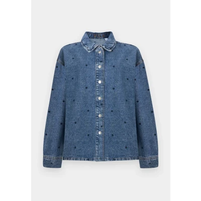 VILA Vicreek Heart Shirt Buttondown blouse, Women's, Size: 8, Medium blue denim