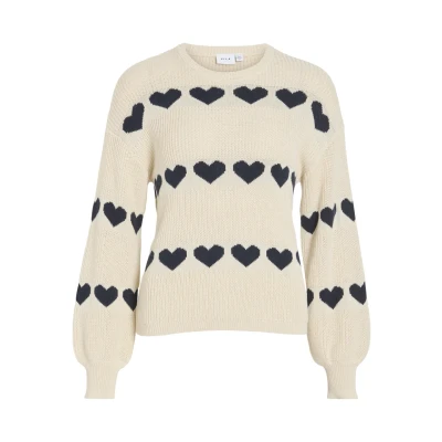 VILA Vijamilla O NECK Jumper, Women's, Size: Large, Birch/navy blazer