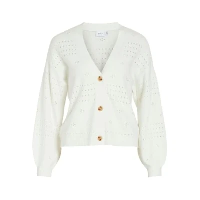 VILA Viril Vneck Cardigan, Women's, Size: Medium, White alyssum