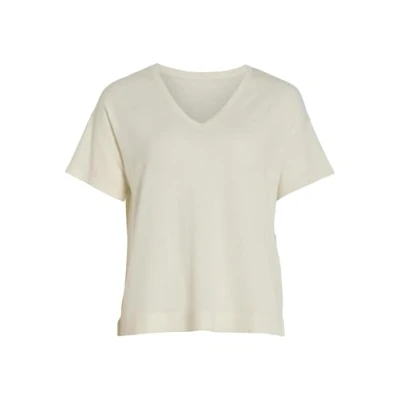 Vila Women's Viabella Rev S/S V Neck Knit Top Noos T Shirt, Egret, S