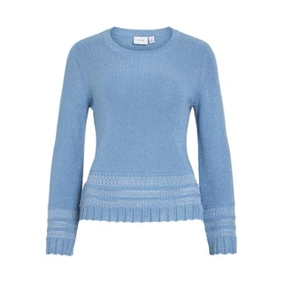 Vila, Adult Regular Fit Glitter Effect Scallop Hem Detail Round Neck Long Sleeve Jumper