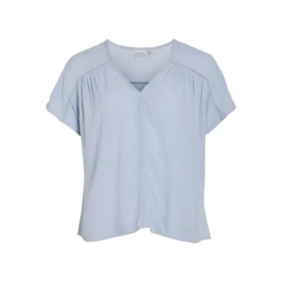 Vila Women's Vieros V Neck S/S Top, Kentucky Blue, 14