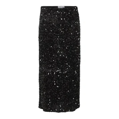 Vila Women's Vifaith Hw Midi Sequin Skirt/Vol, Black Beauty, L