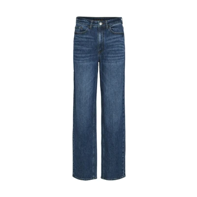 Vila Women's Vikelly Jaf Hw Straight Jeans noos, Medium Blue Denim/Detail:wash Mbd010, 38W x 32L