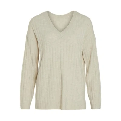 Vila Women's Vimiraz L/S Rev V Neck Knit Pullover/Bf Sweater, Birch, L