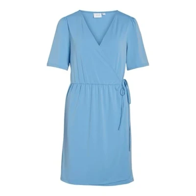 Vila Women's Vinayeli S/S Short Wrap Dress Noos, Blissful Blue, XL
