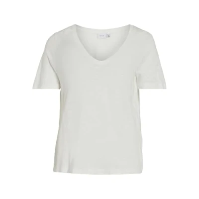 Vila Women's Vinova V Neck S/S top noos T Shirt, Cloud Dancer, S