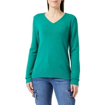 Vila Women's Viril V Neck L/S Knit Top Noos Jumper, Ultramarine Green/Detail:Dark Melange, XXL