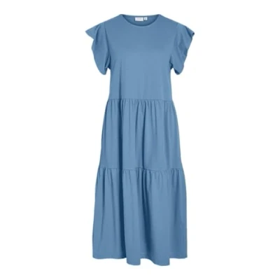 Vila Women's Visummer S/S Midi Dress Noos, Blissful Blue, XS