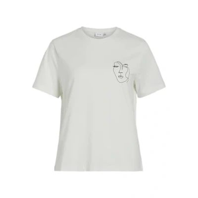 Vila Women's Visybil Faces O Neck S/S T Shirt/Dfs, Snow White, S