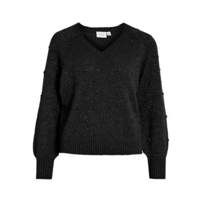 Vila Women's Vituli L/S V Neck Gliter Knit Top/Pb, Black Beauty, L