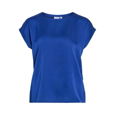 Vila Women's Variety S/S Satin Top/SU NOOS T Shirt, Mazarine Blue, 34, 8
