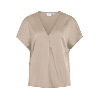 Vila Women's Variety V Neck S/S Satin top Noos Short Sleeved Blouse, Cement, 12