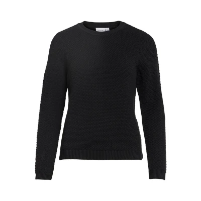 Vila Women's Vidalo O Neck L/S Knit Top/Su Noos Pullover Sweater, Schwarz, M