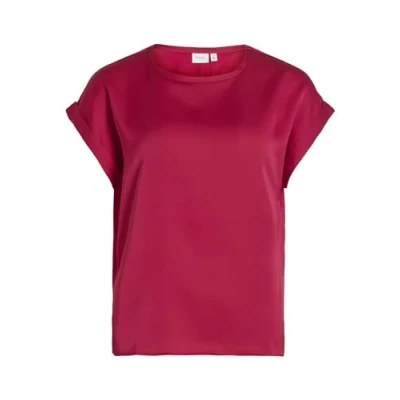 Vila Women's Viellette S/S Satin Top Noos Short Sleeved Blouse, Cerise, 14