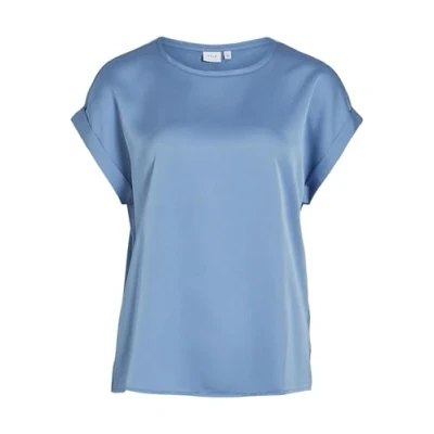 Vila Women's Viellette S/S Satin Top Noos T Shirt, Blue 4, 10